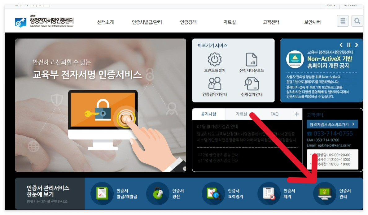 1. EPKI 홈페이지(epki.go.kr) 접속해서 인증서 관리 클릭