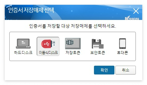 4. USB에 옮긴다면 이동식 디스크를 클릭 후 인증서의 비밀번호를 입력하면 끝!
