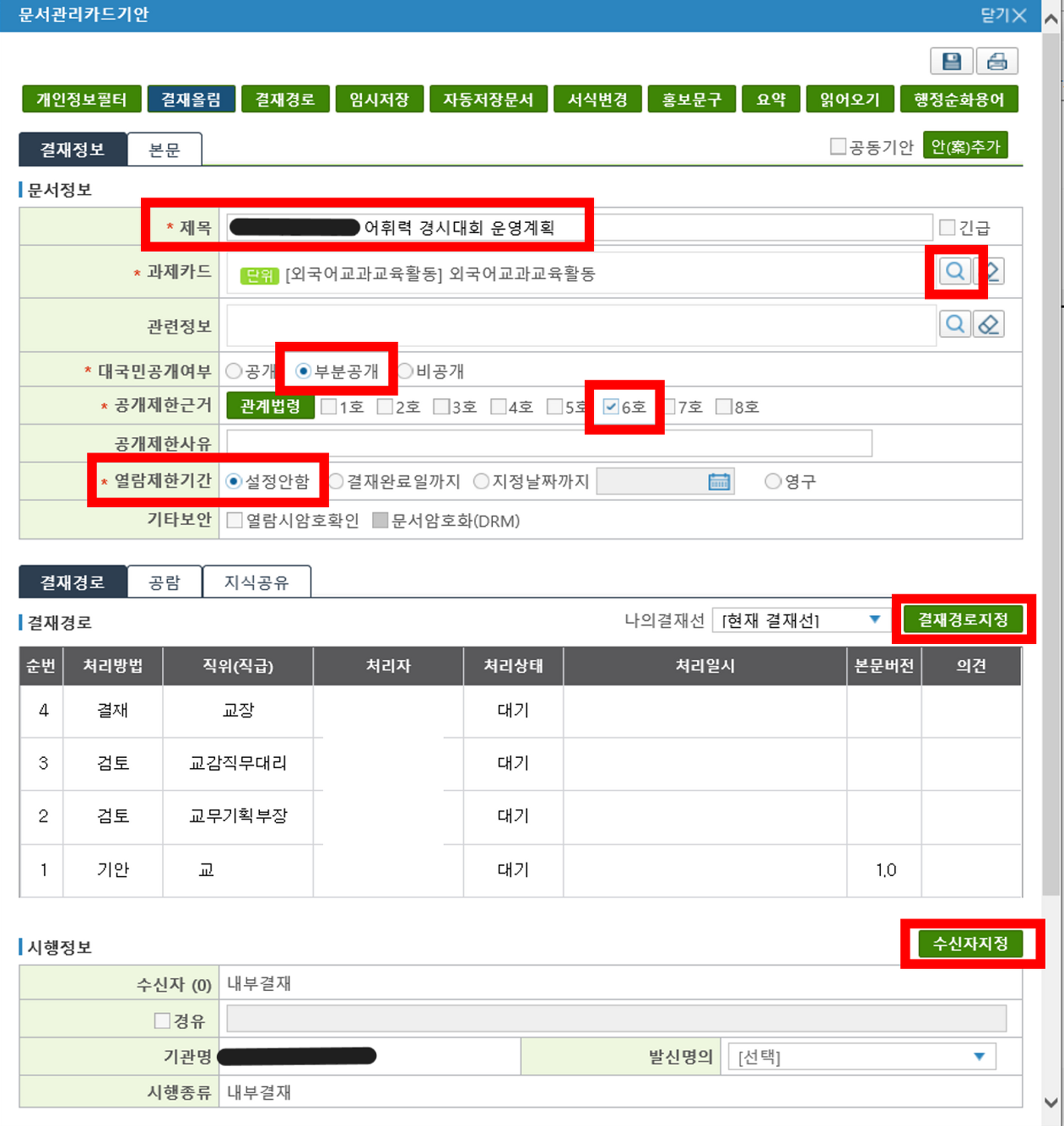 공개제한근거(보통 6호로 하면 됨)