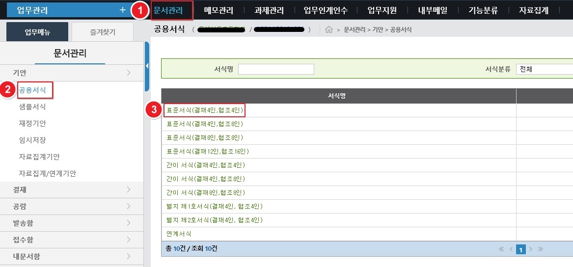 1. K-에듀파인 접속 후 문서관리 - 기안 - 표준서식 들어가기