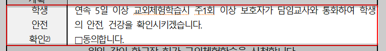 4. 최근에 추가된 내용으로 5일 이상의 체험학습의 경우 담임교사가 중간에 특이사항이 있는지 통화로 점검해야 한다.