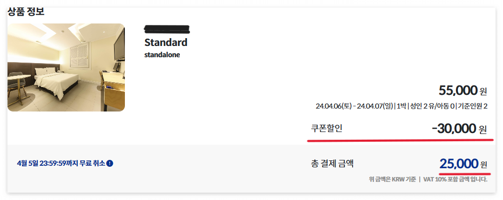 나같은 경우 3만원을 할인 받아 25000원에 숙소를 예약했다.