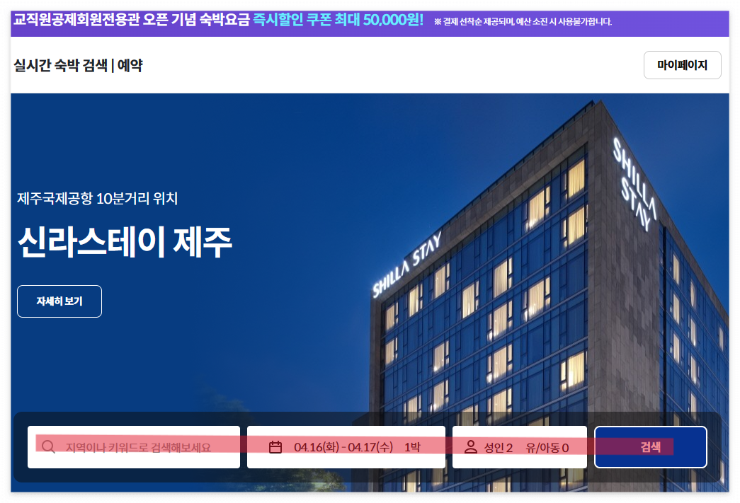 일반 숙소를 예약하듯이 검색을 해준다.