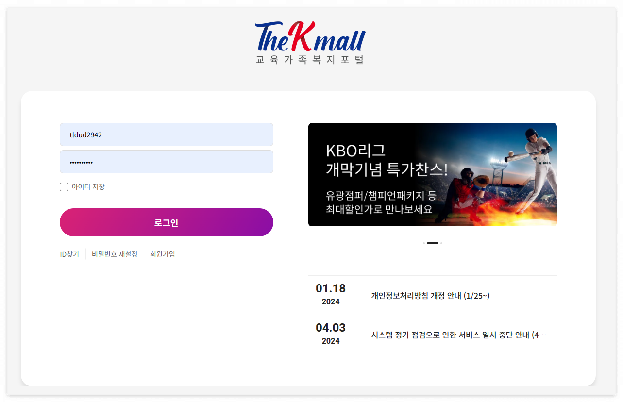 교직원 공제회 아이디로 회원가입이 가능하다.