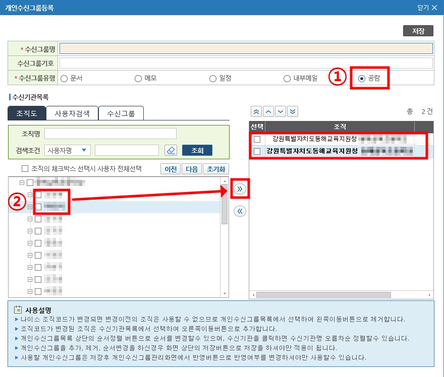 [수신그룹유형]은 [공람]으로!