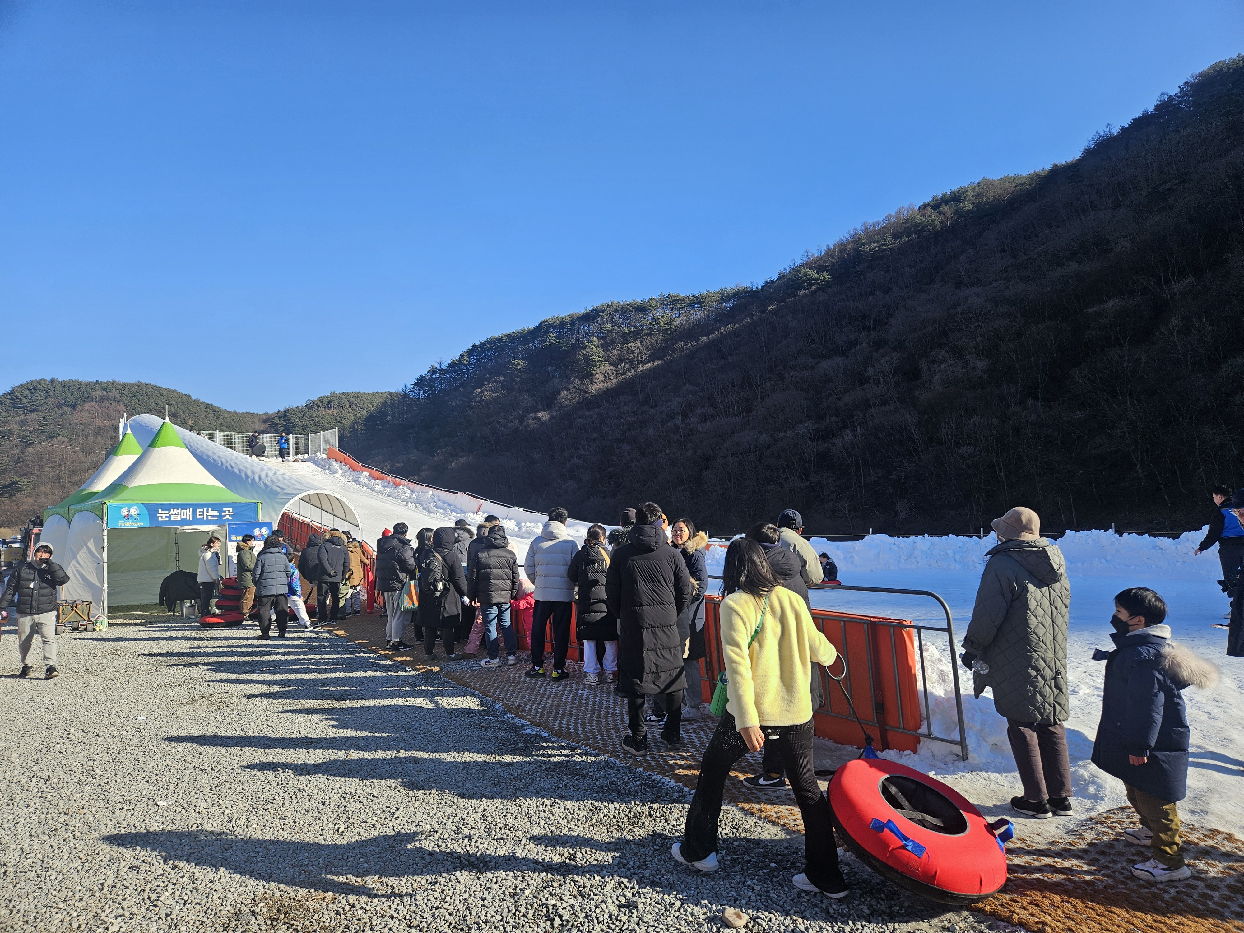 첫 번째로 본 눈썰매는 낮에 가서 그런지 줄이 길고