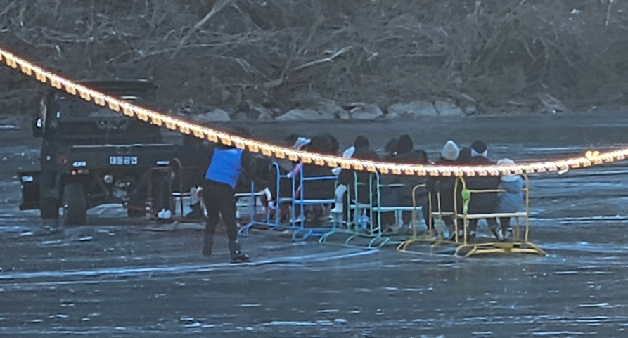 얼음낚시터 - 스케이트장, 먹거리 쉼터 - 회전 눈썰매 - 눈썰매장 - 주차장