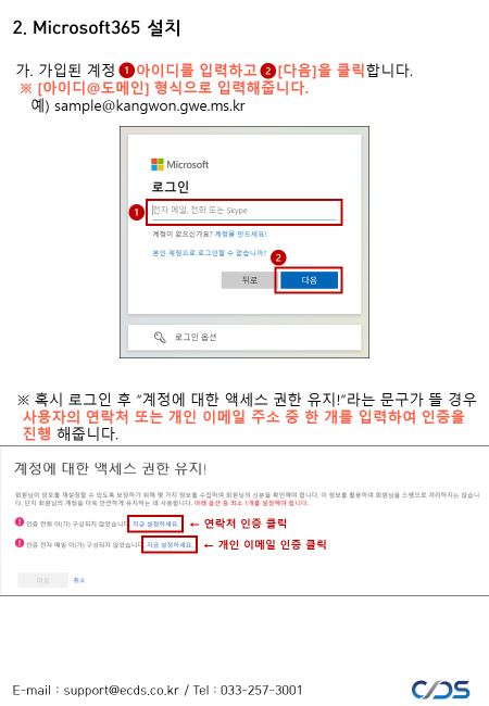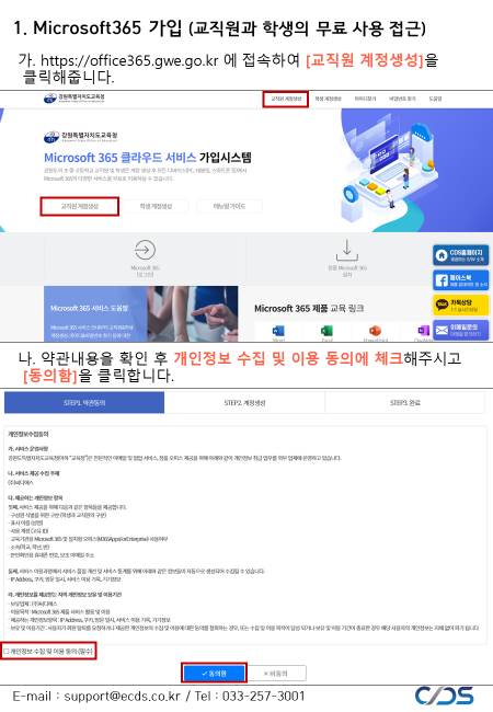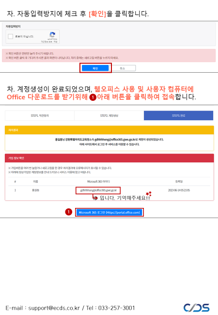 교육용이기 때문에 es.kr과 같이 끝나는 교육용 이메일이 필요하다.